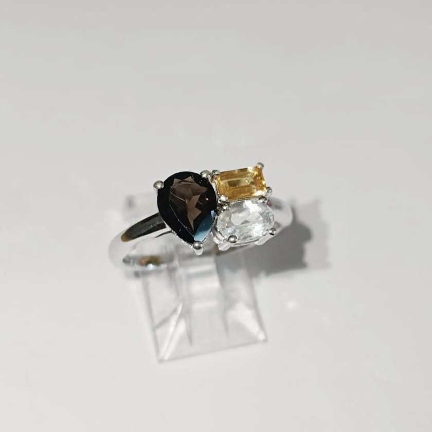 Sunset Trio – Sterling Silver Ring with Multi-color Cubic Zircons