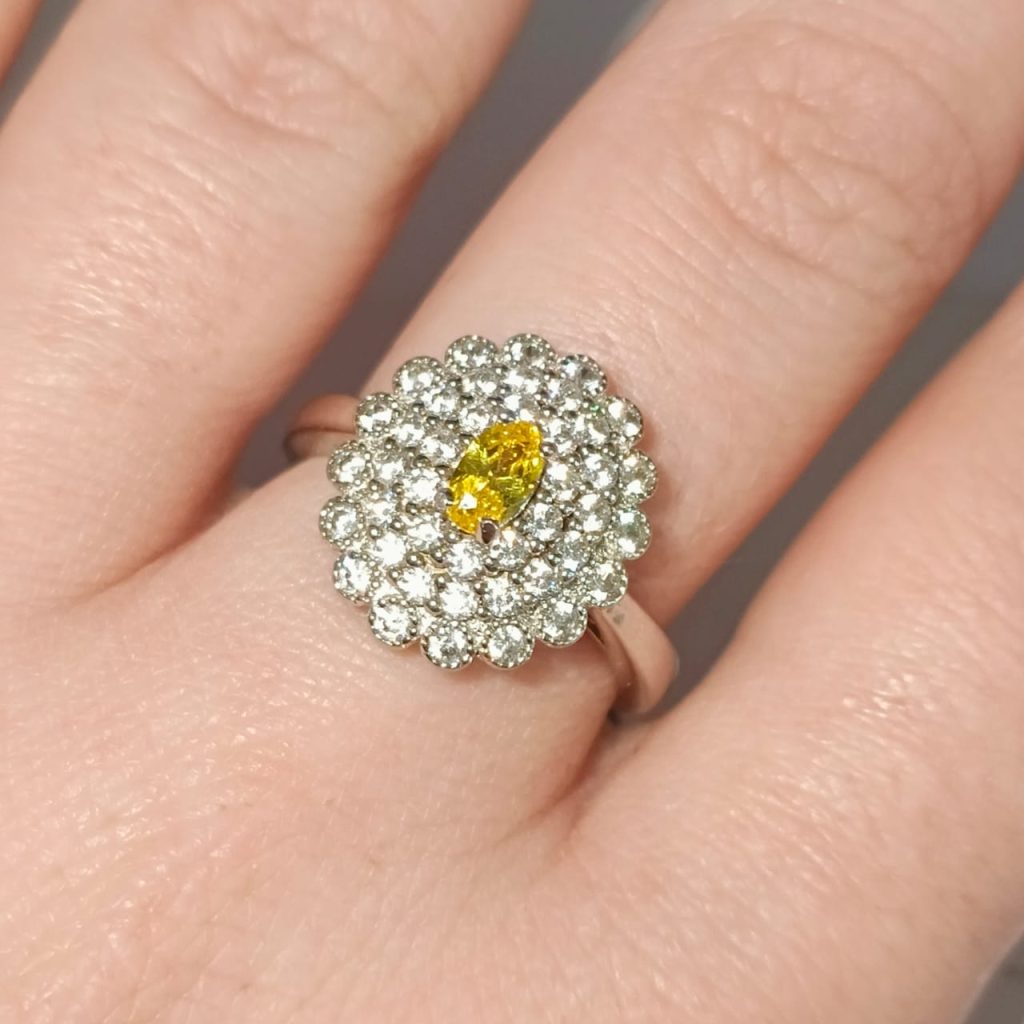 Sunlit Bloom – Sterling Silver Ring with Citrine and White Cubic Zircons