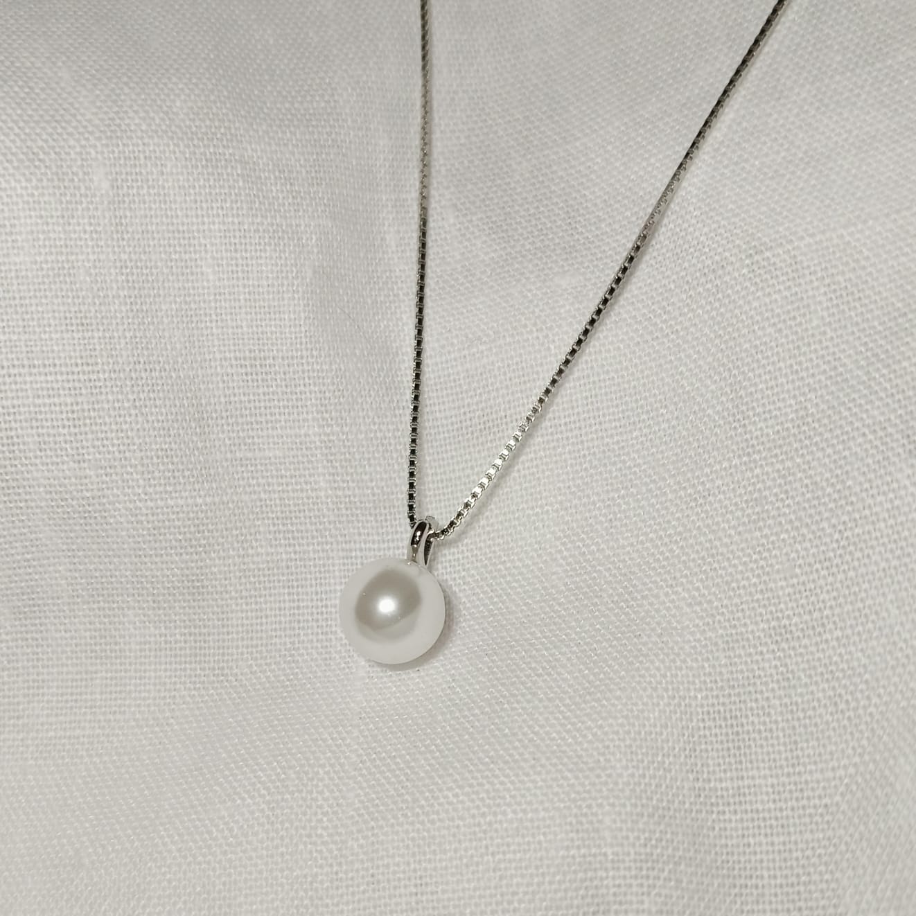 This graceful sterling silver necklace features a radiant natural freshwater pearl, suspended on a fine silver chain.